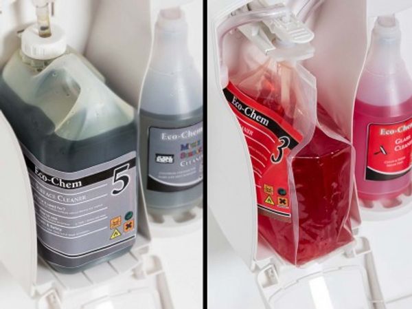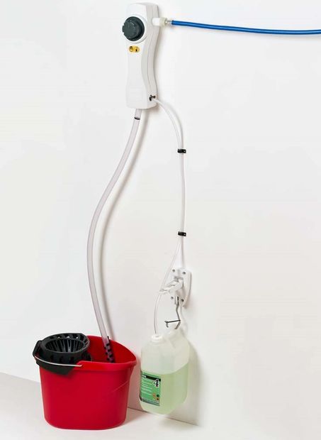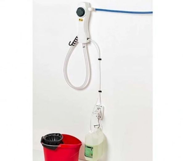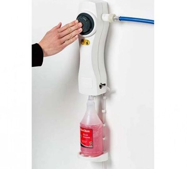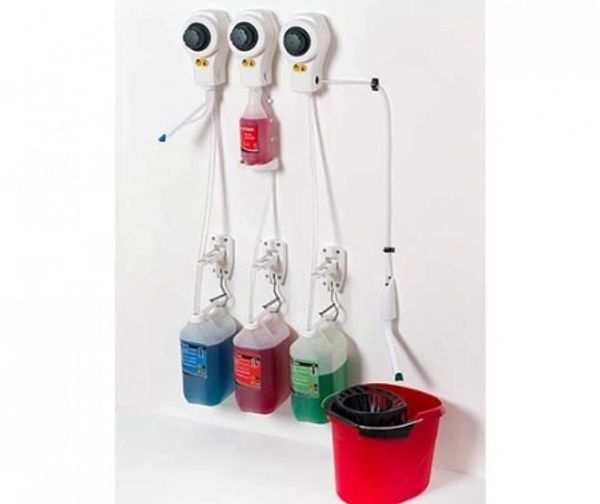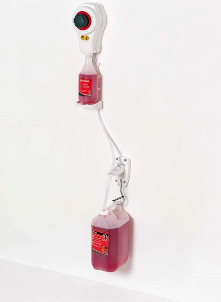 A manual stand-alone chemical dosing system that does not require a water mains connection. It can deliver any measure of concentrates between 5ml and 30ml and is the perfect dispensing system for environments with fluctuating water pressure.