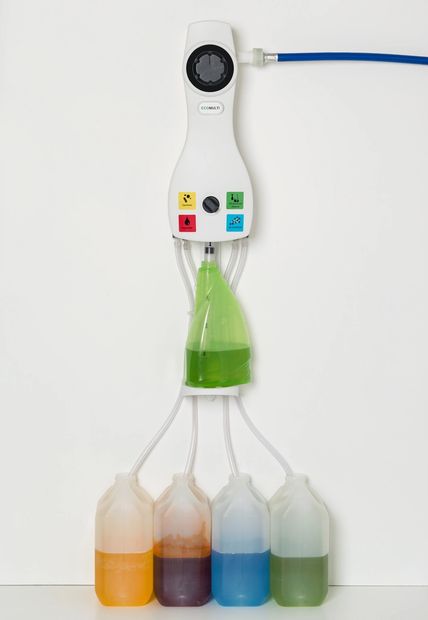 ECOMULTI STANDARD proportioners offer a reliable and cost-effective way of diluting up to four chemicals from one dispenser. Connected to a water mains, the flexible design makes these one-stop chemical dispensing stations the ideal solution for even the smallest cleaning environments. It is available in low-flow (4L/min) and high-flow (14L/min) versions.