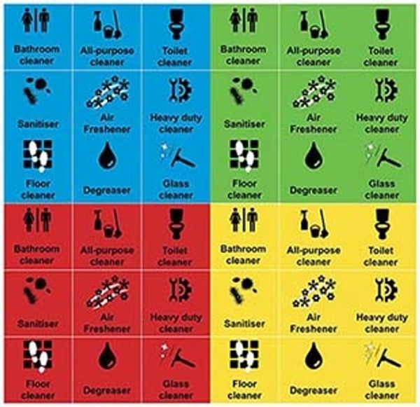 Colour-coded pictograms to aid identification of correct cleaning chemical and use (SEE IMAGES BELOW)
