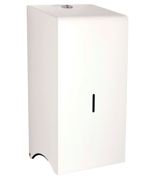 Fitted with a slim line lock, this dispenser enables the storage of two corematic toilet paper rolls. As the first roll is used up, the core splits allowing the second roll to fall effortlessly into place.