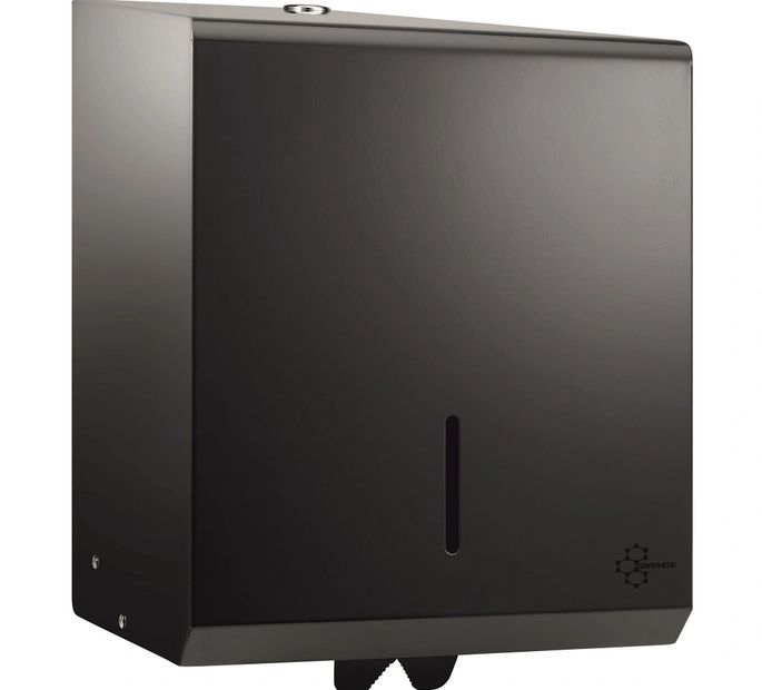Compact and sturdy dispenser designed in ultra modern style with slim line lock. Accommodating a full size centre feed roll, this product will easily dispense perforated or non-perforated paper.