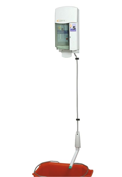 The SuperC is a manual dilution system designed for the professional hygiene industry. The SuperC dilutes highly concentrated cleaning chemicals into a sink, a bucket or a spray bottle. It is used with a multitude of chemicals such as surface cleaners, washing up detergent, air fresheners, or floor maintainers. Chemicals are accurately diluted at point of use, providing an economic, safe and reliable solution for managing chemical usage. You can choose to dilute from either a 2L container or a 1.5L pouch to suit your stock and distribution. The raw materials are kept safely locked away inside the SuperC, eradicating the risk of direct contact between untrained staff and chemicals. It also functions with an initiation feature, which limits the use of the system to the trained cleaning staff only. Once initiated you simply pull the lever up and down to obtain the shot of chemical. Once used, the dispenser cannot function again for a delay of 15 seconds, until the green indicator returns. This avoids harmful and expensive over-dosing. Delivering a precise dosage of chemical, the SuperC is an effective dilution system which meets your hygiene requirements in a safe, cost-efficient and ecological way. .